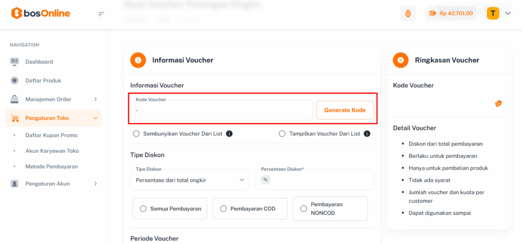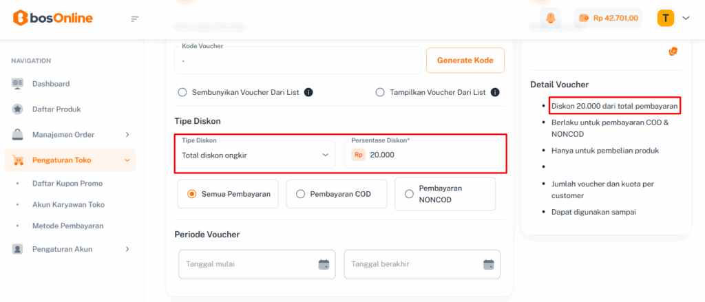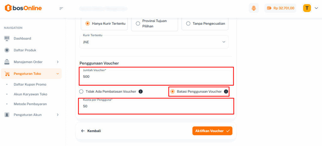 - Voucher Potongan Ongkir: Digunakan untuk memberikan potongan biaya pengiriman.