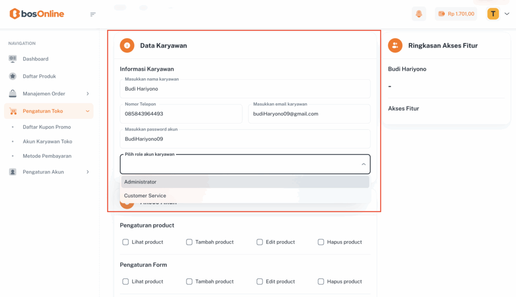 Langkah Praktis Membuat Akun Karyawan di bosOnline