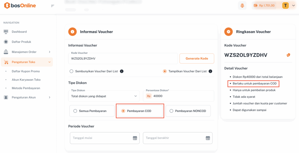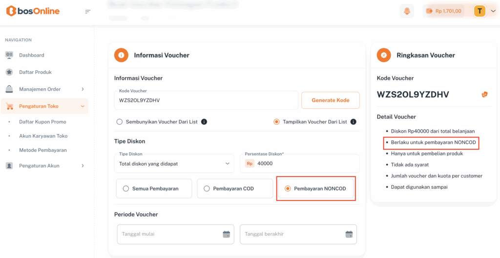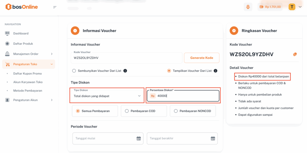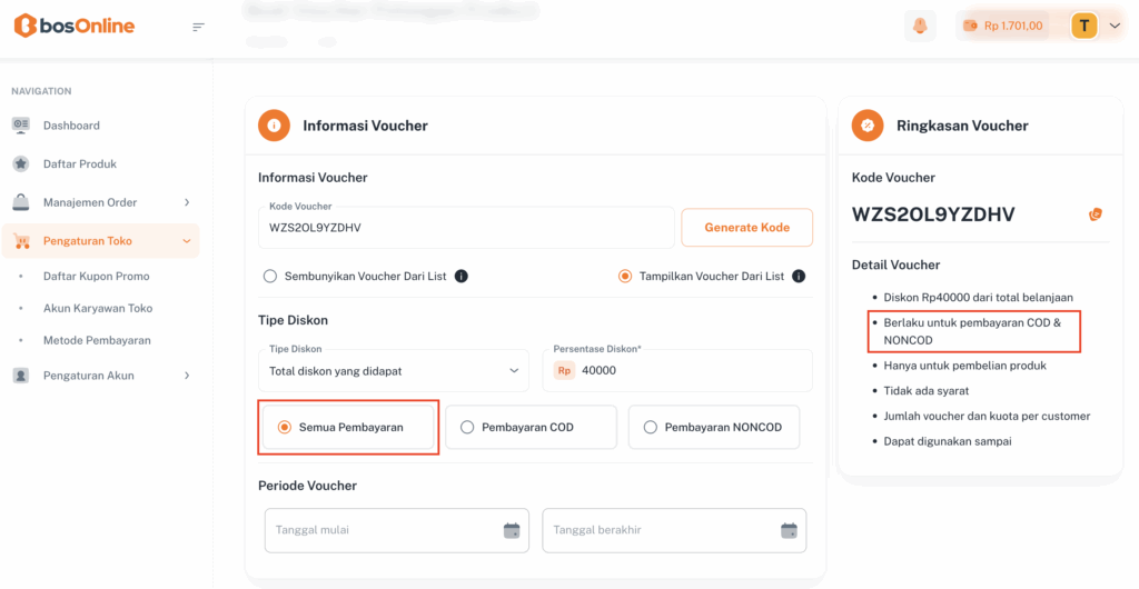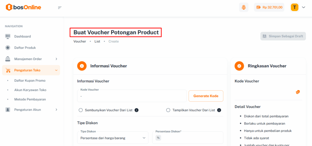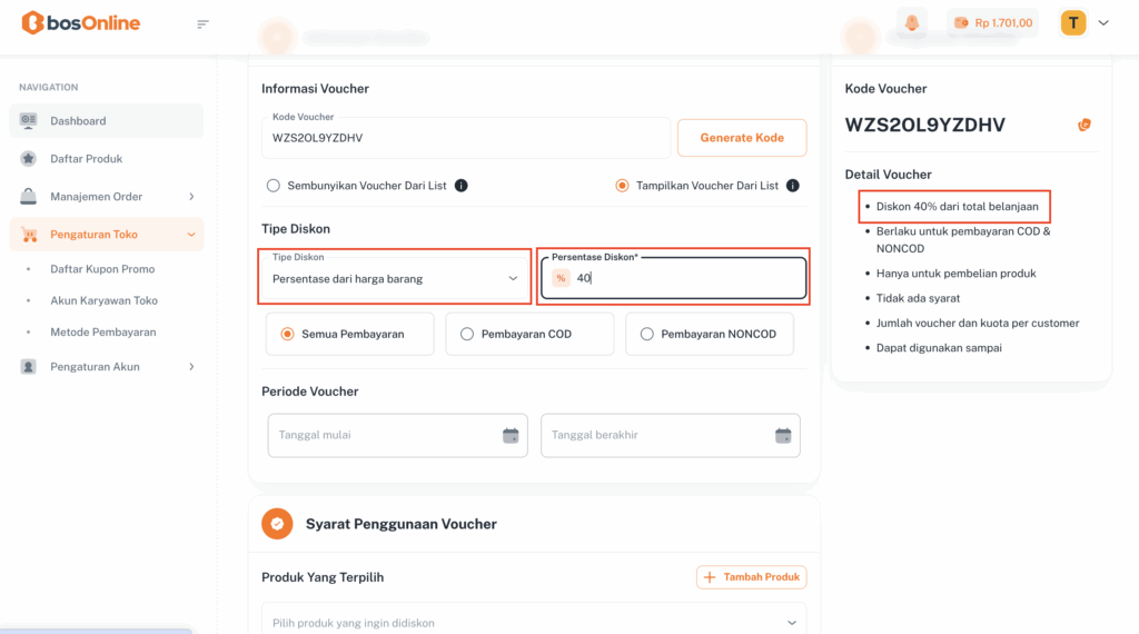 Halo Sahabat bosOnline👋, sudah paham kan bagaimana cara membuat Voucher Potongan Ongkir, sekarang kita akan lanjut untuk panduan membuat Voucher Potongan Produk ✨