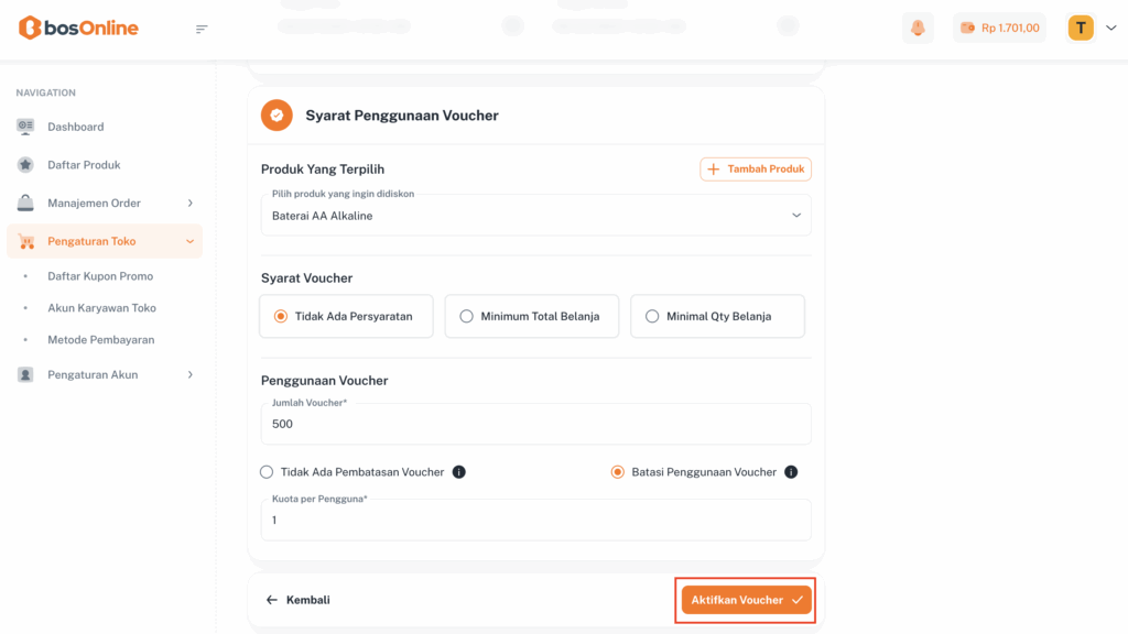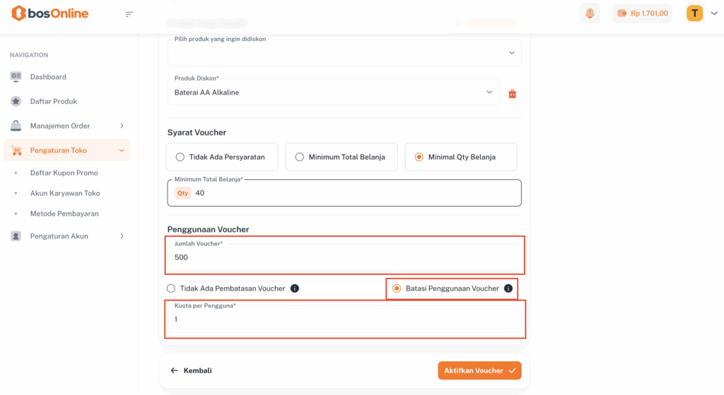 Langkah selanjutnya adalah mengatur penggunaan voucher. Pada tahap ini, kamu akan dihadapkan dengan dua pilihan, yaitu :