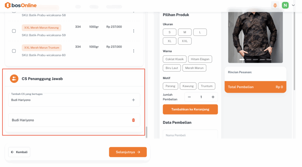 Masuk ke langkah terakhir dari Step 1, yaitu menambahkan nama CS yang akan bertanggung jawab atas setiap orderanmu 💬.