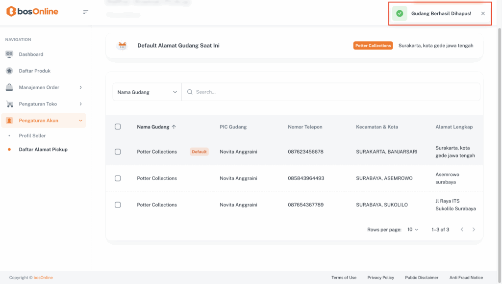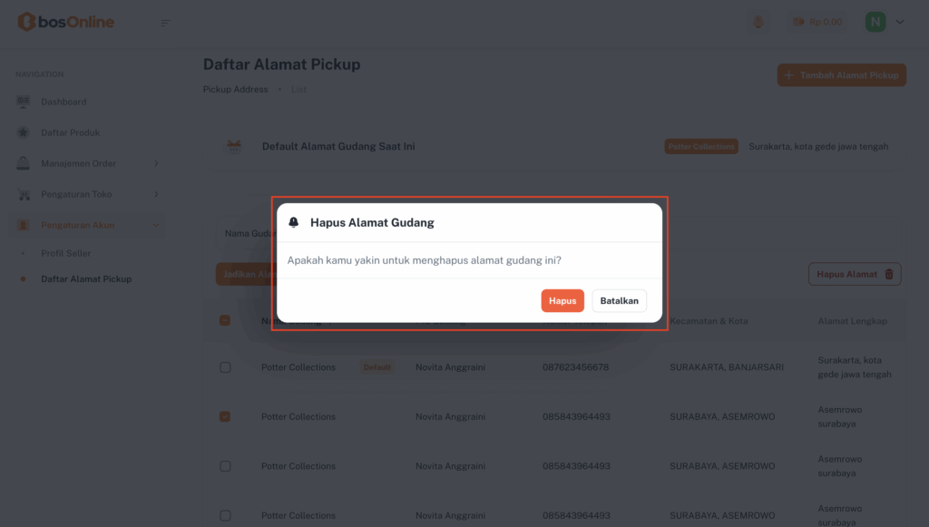 Kamu ingin menghapus alamat gudang di bosOnline? Yuk, ikuti langkah-langkah di bawah ini biar prosesnya mudah dan cepat!