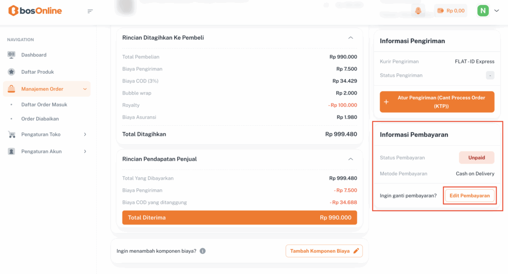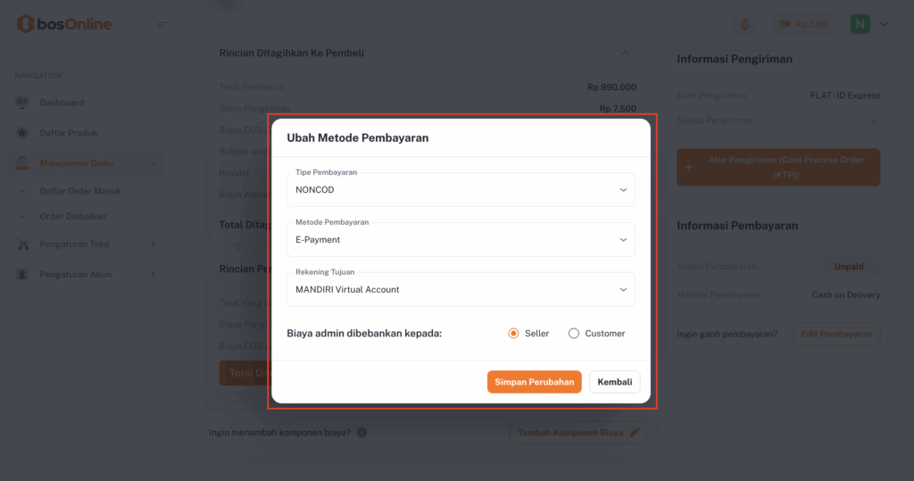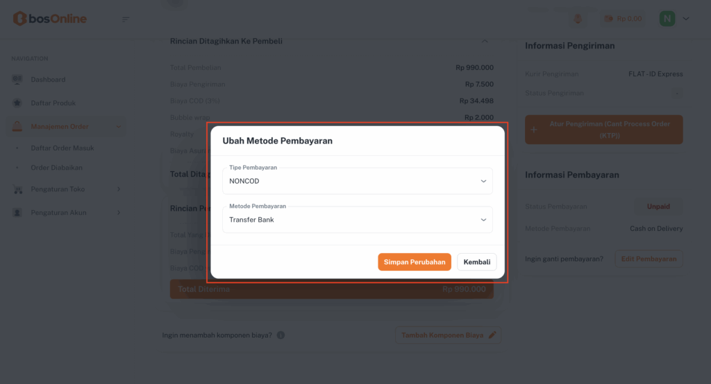 👋 Halo Sahabat bosOnline! Mau ubah metode pembayaran dari COD ke Non-COD, atau bahkan mau ganti ke QRIS? Tenang, nggak perlu khawatir! Kamu bisa mengubah metode pembayaran dengan mudah langsung dari halaman pesanan. 💳✨